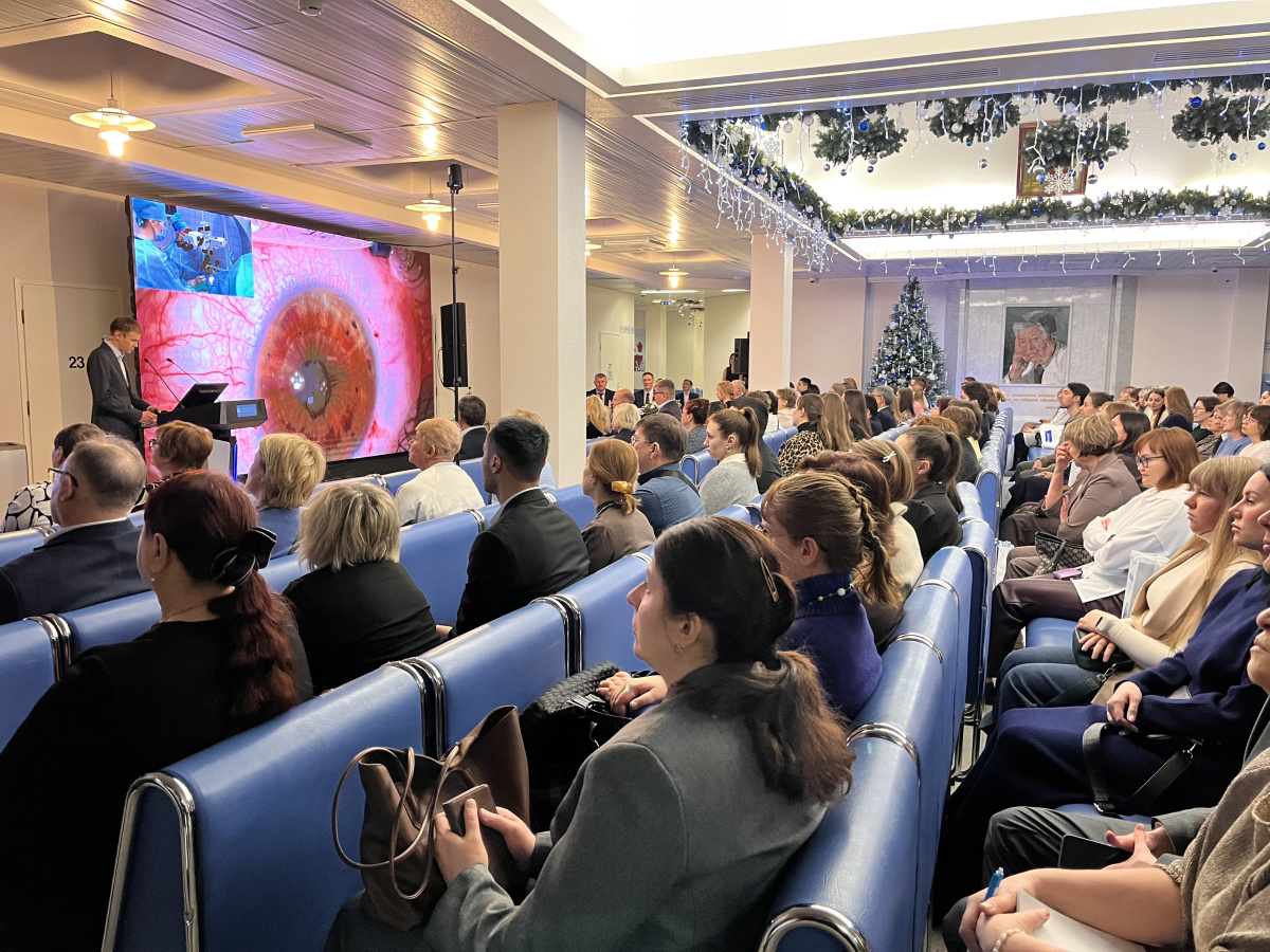 Приветственное слово к гостям конференции прямо из операционной произнес генеральный директор Екатеринбургского центра МНТК «Микрохирургия глаза», главный внештатный специалист-офтальмолог министерства здравоохранения Свердловской области, заслуженный врач Российской Федерации, Шиловских Олег Владимирович: «Дорогие коллеги! Рад приветствовать всех участников нашей ежегодной конференции! Сегодня перед вами откроется широкий спектр интересных докладов, дискуссий и обсуждений. В преддверии нового года мы вновь собрались вместе, чтобы поделиться друг с другом знаниями и опытом. Искренне надеюсь, что этот день принесет каждому из вас пользу. С наступающим Новым годом!».
