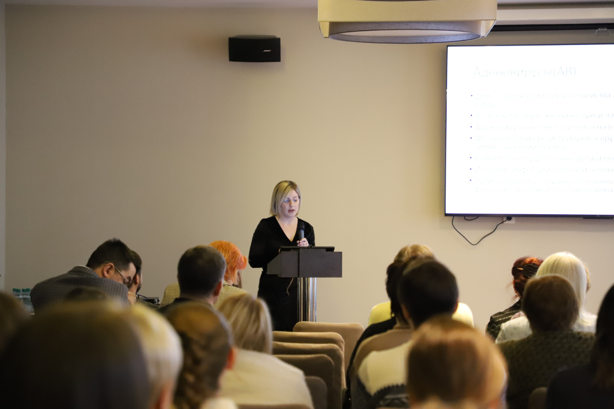 Следующий доклад представила Орлова О.Л., заведующая офтальмологическим отделением ГБУЗ СО ЦГБ Nº2 им. А.А. Миславского. В своем докладе «Аденовирусные кератоконъюнктивиты: диагностика, лечение» автор акцентировала внимание на общесоматических и глазных клинических проявлениях аденовирусной инфекции, провела дифференциальную диагностику между эпидемическим кератоконъюнктивитом и фарингоконъюнктивальной лихорадкой, а также подробно рассказала о тактике ведения пациента с аденовирусным конъюнктивитом на всех этапах течения заболевания. В заключении было отмечено, что лечение данных пациентов нередко оказывается длительным, но должно проводиться амбулаторно.