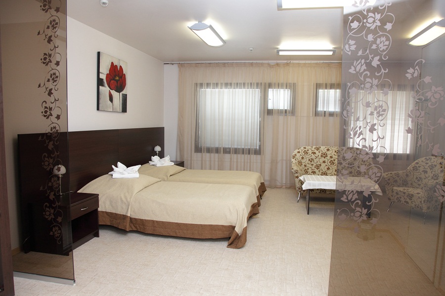 Скорейшему выздоровлению пациентов способствуют прекрасные условия стационара. Он представляет собой шестиэтажное здание с комфортными одноместными и двухместными номерами, а также номерами класса "Люкс". Для людей с ограниченными возможностями в Центре предусмотрены специализированные палаты. Все пациенты стационара до и после операции находятся под наблюдением врача, получают необходимое консервативное лечение. На каждом этаже расположены круглосуточный медицинский пост и процедурный кабинет. В уютном кафе клиники пациентам предлагается разнообразное трехразовое питание, также на этажах стационара можно приобрести товары первой необходимости. Внимание и забота персонала, уход и лечение, чистота и уют номеров, прекрасное питание – все способствует быстрой реабилитации пациентов