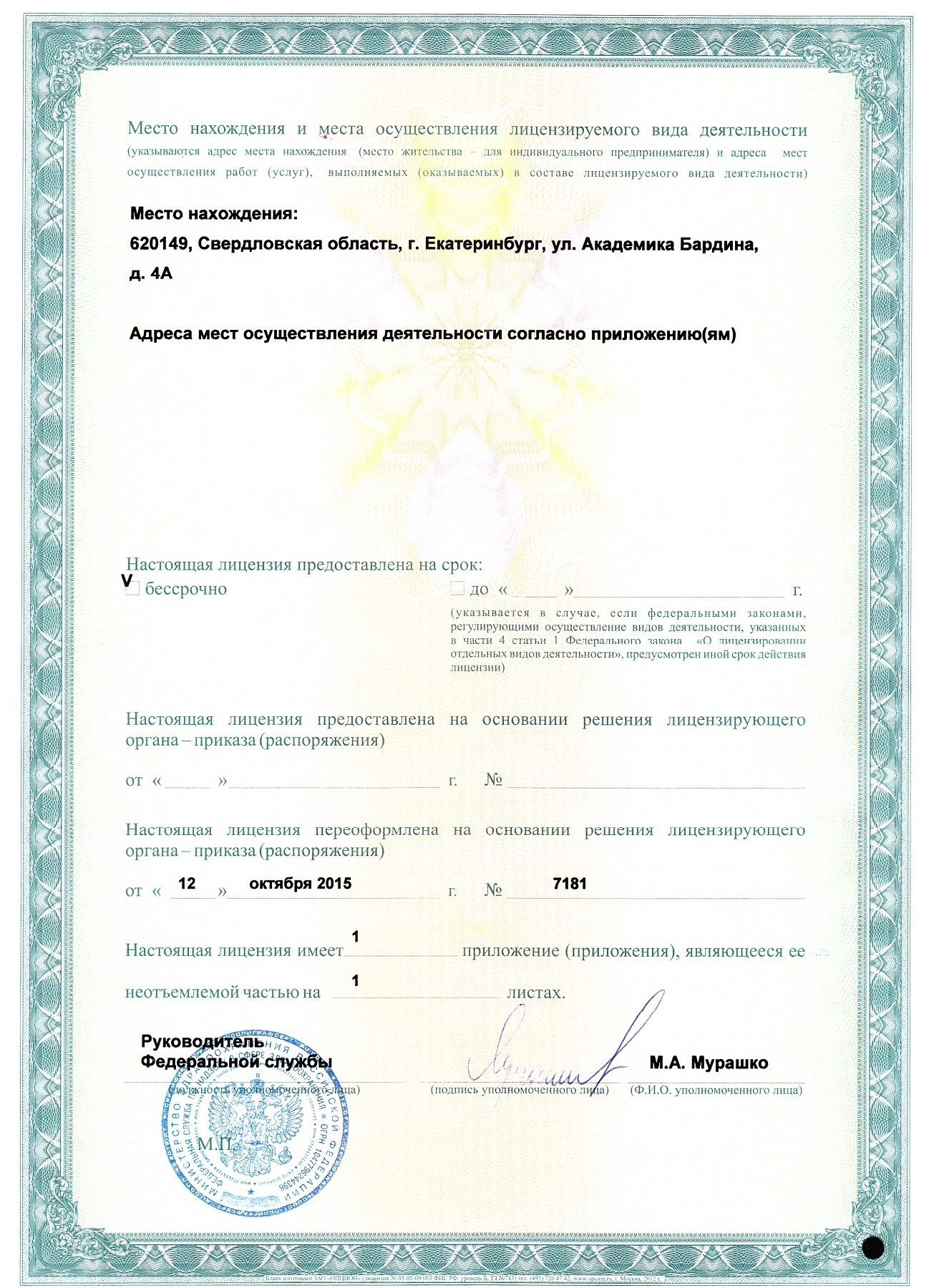 Лицензия на фармацевтическую деятельность: Л042-01021-66/00161798