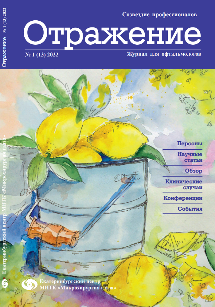 Журнал «Отражение» — это специализированное медицинское издание для врачей – офтальмологов, в котором публикуются актуальные и наиболее интересные научные статьи по офтальмологии и офтальмохирургии, информация о профессиональной литературе, курсах повышения квалификации и многом другом.